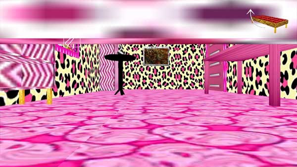 1、打开游戏,你会发现在一个充满粉色的房间里醒来,靠近床的地方会有右上角的按钮,点击它。就能躲到床底下。