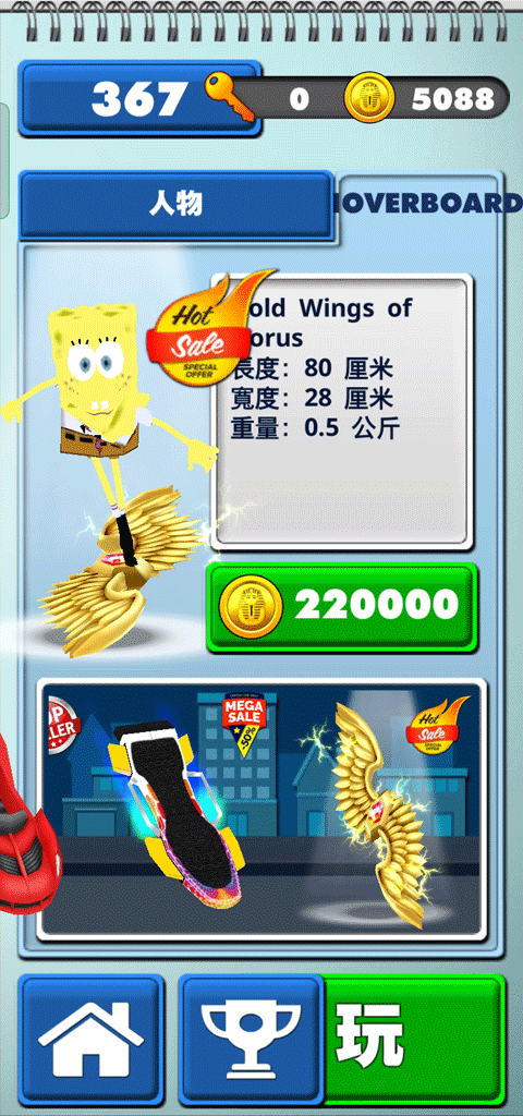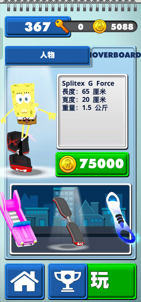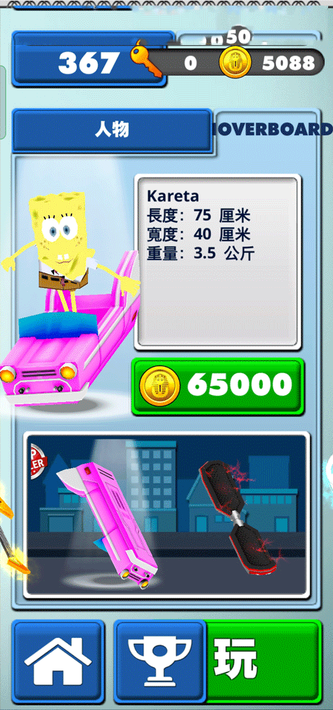 海绵宝宝地铁跑酷游戏悬滑板图片展示