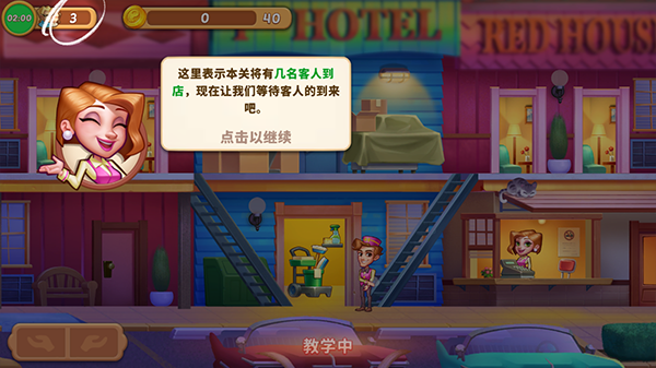 2、在游戏时,上方则会显示酒店入住客人及需要赚到完成任务的金币数量