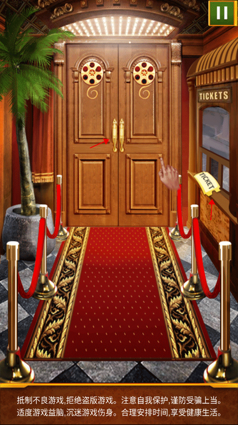 同样根据提示点击右边的窗口拿到门票,进入门里面。