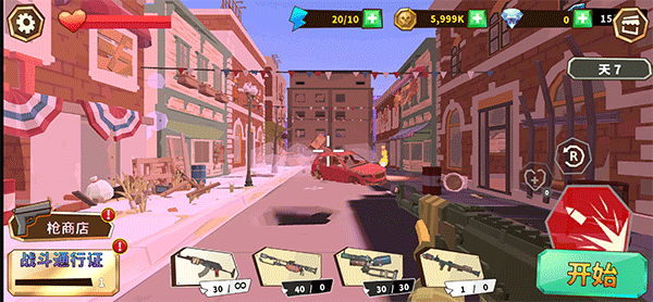 2、点击枪商店,可以在这里购买各种枪械,并且可以对枪械进行升级;