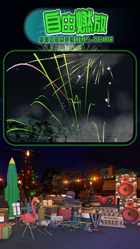 烟花燃放模拟器最新版是一款好玩的3D画面烟花模拟手游,采用经典的模拟运营玩法,完美展现了烟花燃放瞬间的炫目效果。玩家通过指尖点击即可让烟花飞向天空,并爆发出耀眼的火花与图案,视觉效果非常震撼。游戏中为玩家提供了多种类型的烟花选择,包括大型烟火和小型玩具如冲天炮、花火棒等。玩家可以用手指启动这些烟花,感受点燃时带来的氛围感。游戏还支持在不同地点燃放烟花,更有创意的是可以尝试在加油站等特殊场景进行点燃,观察烟花爆裂时的画线勾勒效果,体验其中的艺术美感,并根据自己的想法创作独特的烟花秀场。游戏特色:1. 超过六种不同的精美场景地图,从纯色背景到璀璨星空,带来更逼真的视觉体验;2. 360度无死角视角切换,全方位欣赏绚丽烟花;3. 解锁机制:完成前置任务后才能解锁新区域和更多挑战内容;4. 支持自定义设计独特的烟花图案和色彩方案;5. 多种烟花组合自由搭配,打造属于自己的独特烟花表演。游戏玩法指南:1. 下载游戏并打开后选择单人模式或多人模式(以下介绍单人模式);2. 在单人模式中选择感兴趣的两张地图之一进行体验;3. 左手滑动屏幕上的虚拟按键控制角色移动,通过滑屏调节视角;4. 点击喷火器图标即可获得喷火道具;5. 点击启动按钮开始操作,利用屏幕滑动控制喷火方向以点燃烟花;6. 瞪大眼睛观看烟花爆裂时的精彩瞬间。这款游戏不仅玩法丰富有趣,还为玩家提供了充足的创意空间,无论是新手还是资深玩家都能找到属于自己的乐趣。