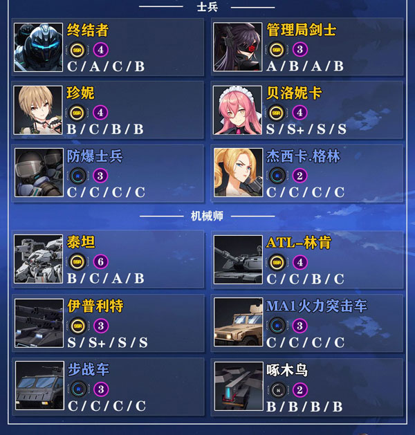 时间有限,暂时只展示“前锋”,全职业以及角色评价可以在“完整版”中查看