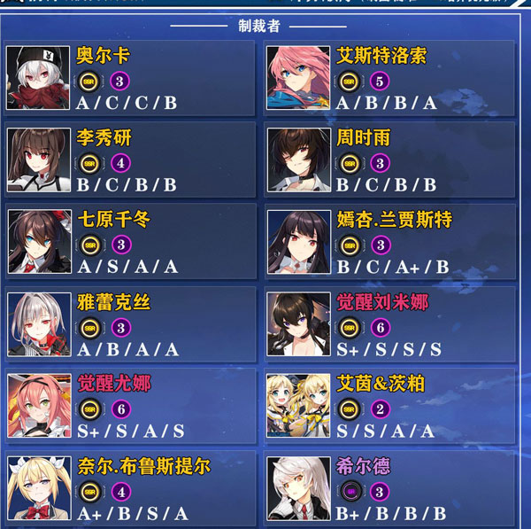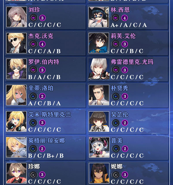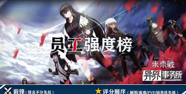 评分顺序:PVE刷图、PVE高难、PVP、培养优先级