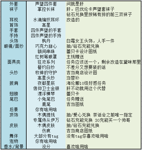 食用指南:仅推荐可以快速通过容易获得推荐单品,不包含限时活动物品