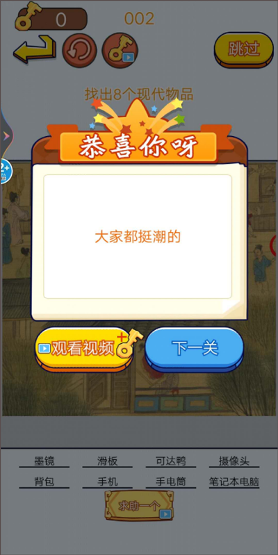茬子来了是一款有趣又搞怪的休闲益智游戏,在这款游戏中,玩家需要耐心地仔细观察关卡给出的画面,并根据关卡的要求来进行搜索,发现并圈出画面中不合理的地方,正确找出全部的位置即可挑战过关。比如存在于古代的电风扇、收音机、耳机等奇怪的物品。而且这款游戏玩法非常简单,每个玩家都能轻松上手,玩家可以在游戏中参加不同的挑战,只有尝试才会带给玩家更多的成就感。并且在不断地玩耍之中可以提高玩家的技巧,能够让挑战关卡变得轻松一些,遇到找不出来的物体时还可以求助,还有多种道具帮助玩家通关。感兴趣的玩家不妨来下载尝试一下。