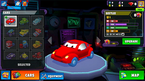 以行星形式呈现的真实 3D 地图 - 各种明亮而独特的地点 - 与有趣的任务和使命赛跑 - 每日奖励 - 动画大车库 - 超过 10 辆饥饿的汽车,找到完美适合你游戏风格的那一辆 - 每辆车都有很多升级,提高涡轮增压、速度、装甲和伤害 - 大量酷炫小玩意、炸弹、撞锤、武器和无人机 - 测试任何设备的独特机会 - 描述游戏所有方面的广博图书馆 - 测试你的技能的竞技场中的许多关卡和致命战斗 - 狡猾的老板拥有独特的武器 - 不同类型的控制选择,包括操纵杆 - 有趣而多样的迷你游戏