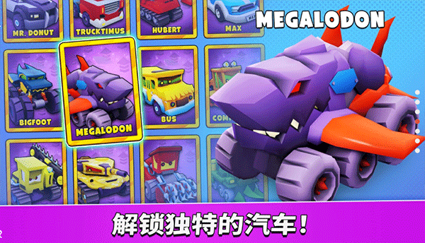 你从未见过如此这般的。现从四面八方都可以看到 Beetlee、Gator、Locomachina、Tankominator 和其他传说中的饥饿汽车,全面呈现其辉煌!每辆车都有一个独特的功能,使其独一无二。它们会帮助你打败危险的外星人!投弹,咬合,高速撞击并获胜!