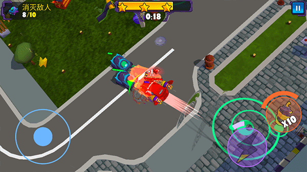 - 使用导弹发射器、冻结射线、磁铁等多种小工具提升战斗能力。