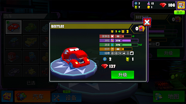 - 提升汽车的各项属性,包括护甲、速度和攻击能力。