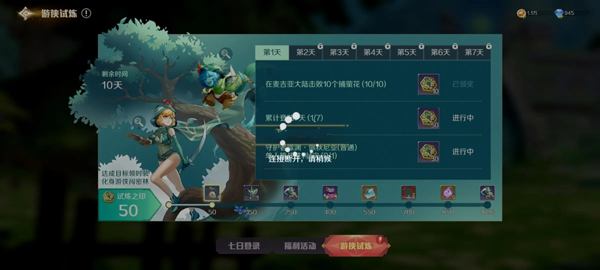 七日登录、每日签到、在线奖励、游侠试炼、地图探索、成长任务等等福利活动,均可以领取大量的金币、钻石、抽卡券、养成材料,游侠试炼完成后更可以免费领取限定皮肤。