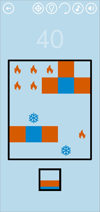 第六十关:推冰块融化岩浆,让两个红球能见面