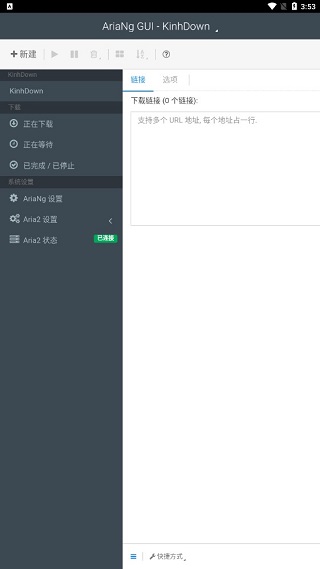 AriaNgGUI是一款非常优秀的下载工具,现如今很多版本都是电脑版,但是呢还是有很多小伙伴喜欢使用手机下载一些百度网盘中的资源,因此多多小编为大家带来了kinhdown安卓版,已内测完成,修改软件中的bug,支持高速下载百度网盘资源,提供下载加速功能,不提供任何下载资源和链接,你的宽带速度有多快,下载速度就有多快。并且使用kinhdown公测版app的同时,无需进行注册,能够直接将你的百度网盘的链接放入到软件当中即可快速下载。另外,该软件还支持Cookies方式登陆网盘账号获取文件下载,使用它的同时,轻轻松松搞到想要的资源,有需要的朋友欢迎下载体验。
