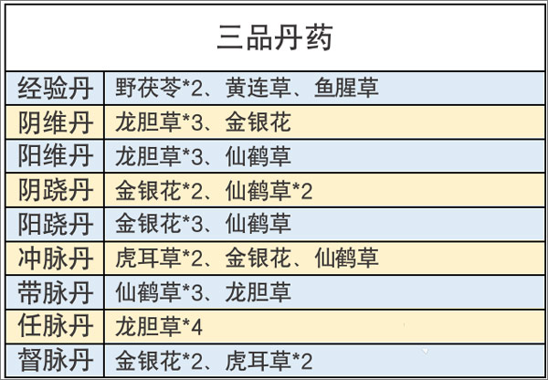 炼丹材料须通过江湖采集、江湖中的NPC商人、后山探索等途径获取。采集一次花费6体力,从商人处购买也要花费不少元宝,肝材料在小编看来可是很麻烦的一件事,所以积攒的草药一株也浪费不得,事不宜迟,小编这就将丹药配方为各位少侠们奉上。