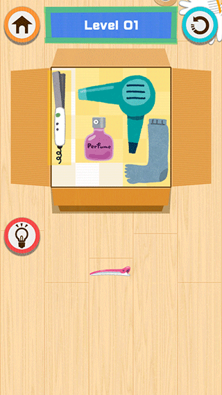 Pittanko是一款让人欲罢不能的收纳小游戏,适合喜欢整理和挑战的玩家。游戏的目标是将不同物品完美放进搬家箱里,通过超过100个关卡。难度分为新手、达人和包装大师三个级别,箱子大小也逐渐变大,从5×5到8×7,甚至需要完成50关才能解锁最高级别。