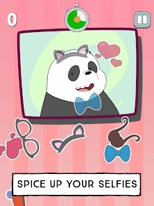 - 照片完成 - 使用贴纸帮助熊猫最大化他的自拍风格。给熊猫拍一张自拍照,然后将正确的贴纸拖到他的脸上,以获得积分和能量。