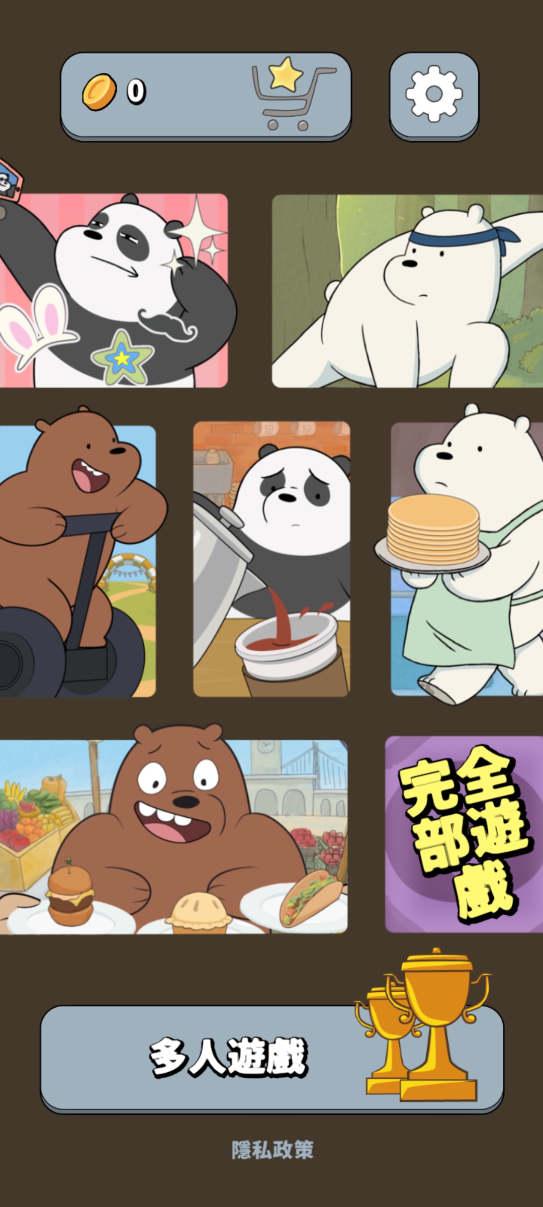 咱们裸熊游戏界面设置的非常的可爱,小熊也是非常的让人喜欢。在六种不同的迷你游戏中,他们可以帮助他们解决日常的不幸事件。让熊猫成为这座城市最好的咖啡师。用冰熊练习神秘武术。 Grizz从市场上采集食物样本。看看每场比赛的得分有多高!游戏的玩法十分简单,还可以体验小熊的休闲生活,感兴趣的玩家快来下载体验吧!