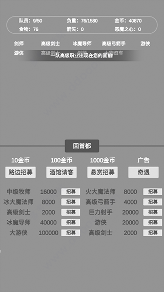 1、魔法师、牧师、剑士等多种职业的士兵供你解锁。2、可以通过路边招募、酒馆请客、悬赏招募等途径招揽更多队员。