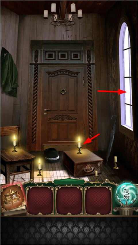 5、第五关,这一关我们把窗户关上,然后点燃地上所有的蜡烛,大门打开,进入第六关。
