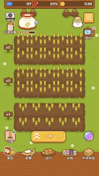 没有食材,更不用提售卖了,所以我建议利用好营业额和从“该做的事”中获得的金币先将麦田升级到至少三块。