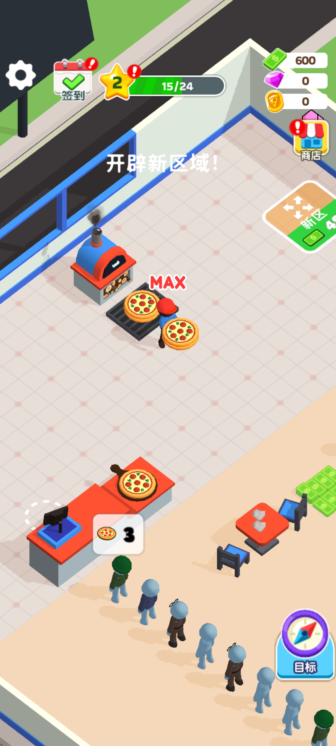9、当等级达到2级时可以开辟一个新的区域并获得钞票。