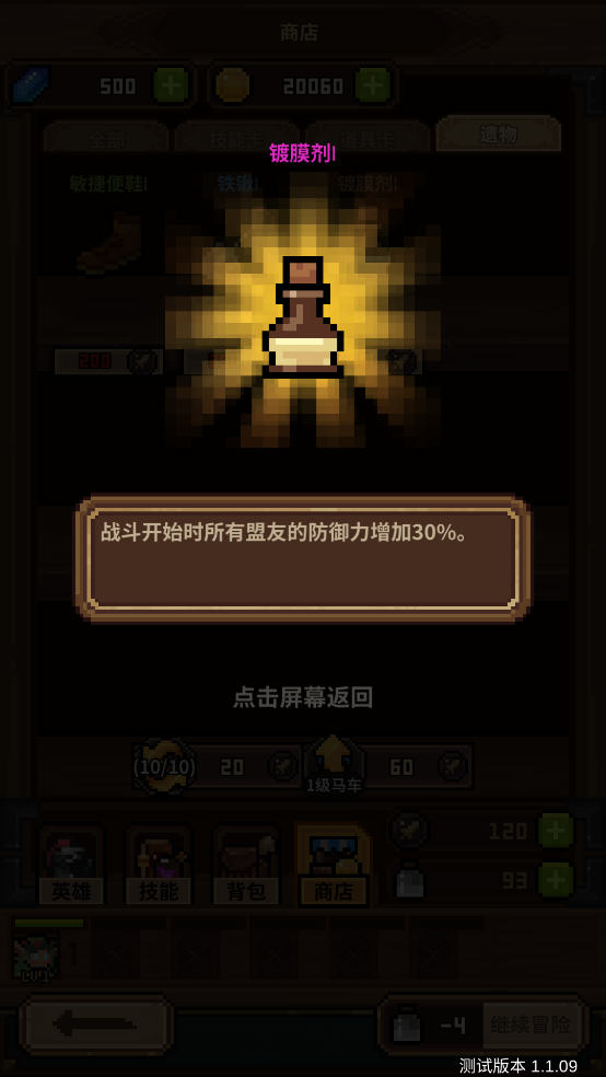 (3)镀膜剂:战斗开始时所有盟友的防御力增加30%。