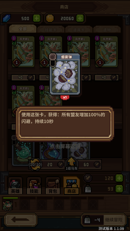 (3)烟雾弹:使用这张卡,获得:所有盟友增加100%的闪避,持续10秒