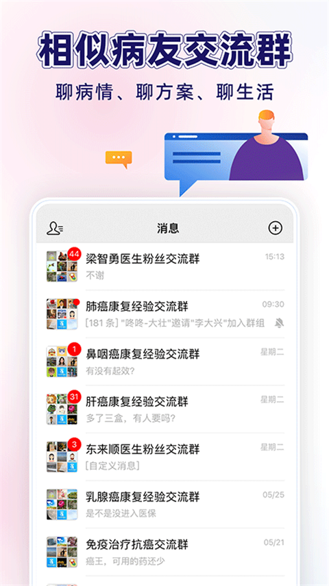 - 抗癌达人互动:向抗癌成功者学习经验,汲取精神力量。