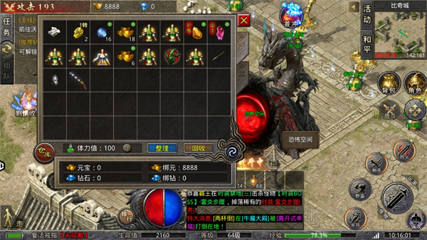 参与活动:参与活动、沙城争霸等活动,与其他服务器玩家竞技。这些活动竞争激烈,但奖励丰厚,可获顶级装备、珍稀道具。在挑战禁地中,展现实力,提升知名度与影响力。