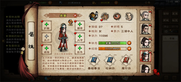 十七位身怀各色绝技的伙伴,力助玩家勇闯天涯,问鼎武林。