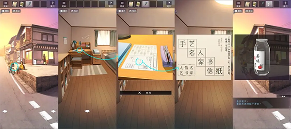在街道与弟弟对话得到苦茶,将苦茶给幽灵得到空杯子,空杯子在书桌前使用得到剪好的纸杯,纸杯与线轴组合得到编织工具。