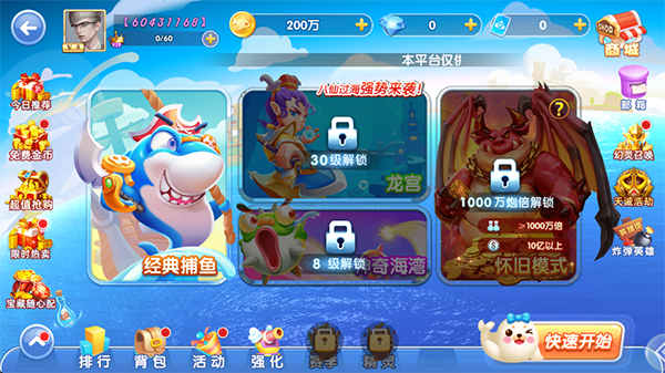 多重福利回馈: 登录即送海量金币,每日福利活动不停歇,打造全民捕鱼盛宴。