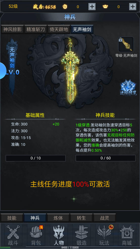 1级穿透:发动袖剑急速穿透目标5次,每次造成攻击力30%+250的穿透伤害,该伤害无视目标任何防御和减伤效果,也无法触发其他效果,您的准确会提高袖剑的伤害,每点提升0.50%