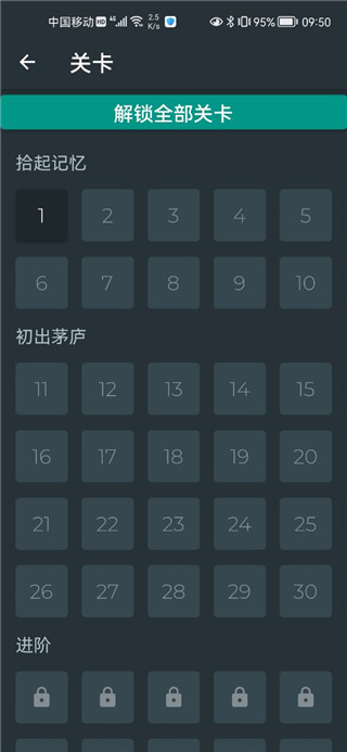 1、划分不同的关卡难度阶段,其中有拾起记忆、初出茅庐以及进阶等不同难度;