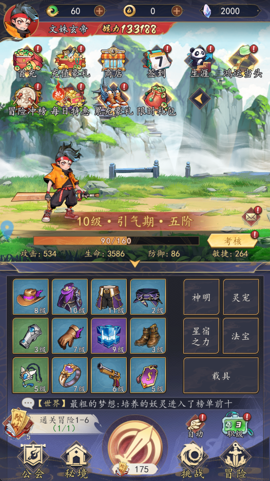7、完成考核任务且经验足够时可以突破等级上限和提升境界,提高自身的基础属性,