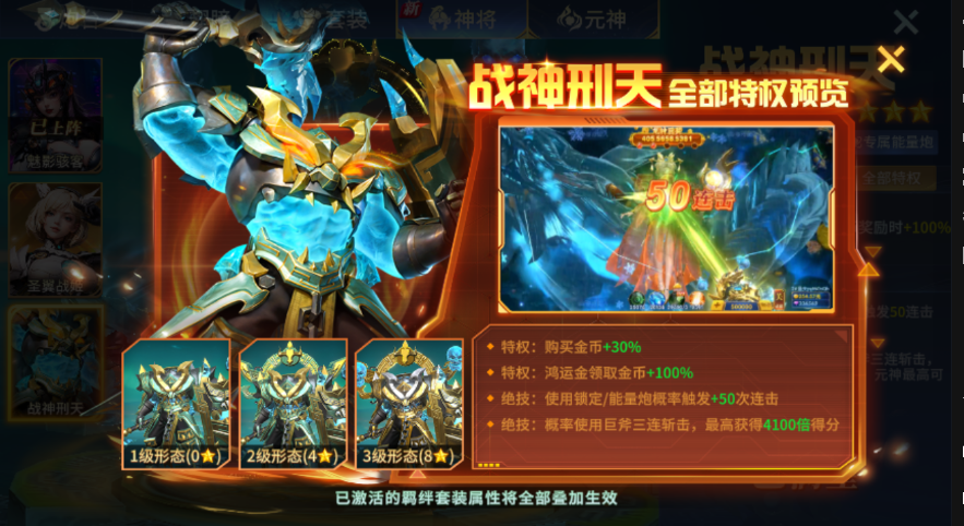 1、如果两个神将全部满5星,商城购买钻石有机会翻倍(最高X4),捕获机娘时概率触发,得分最高提升30%;