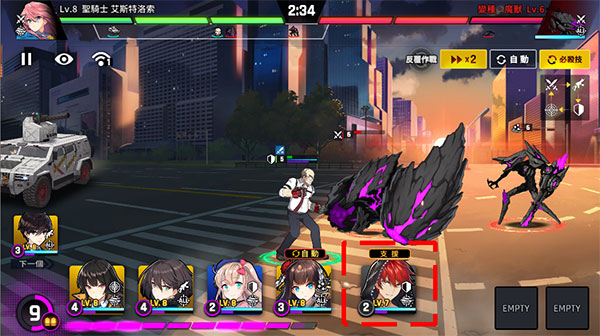③此部分可针对员工的编入状态,选择'显示/不显示',也可进行调整员工的编入队伍,如果发生人员配置困难时,也可透过「自动编队」功能,将尚未初级的员工随机进行编队。将会自动配对目前尚未出击之成员最高等级8名。