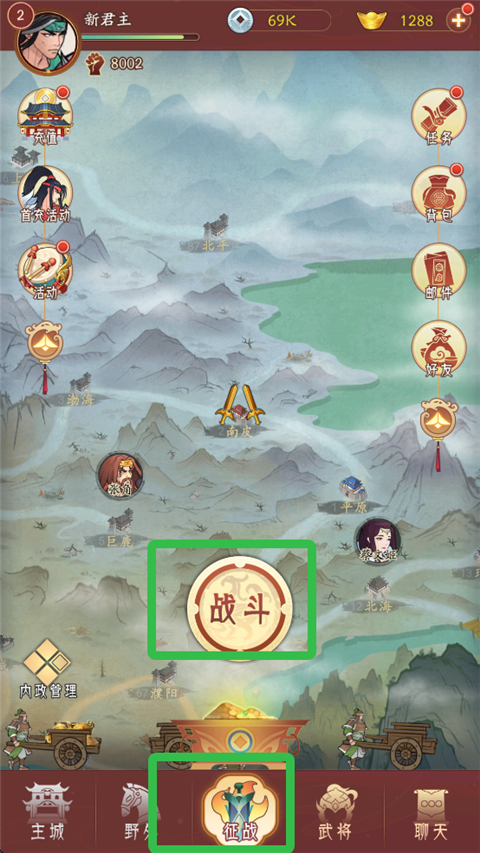 从刚开始只有一座“平原”城开始,逐渐向周边扩张,统一全国才是我们的最终目的。