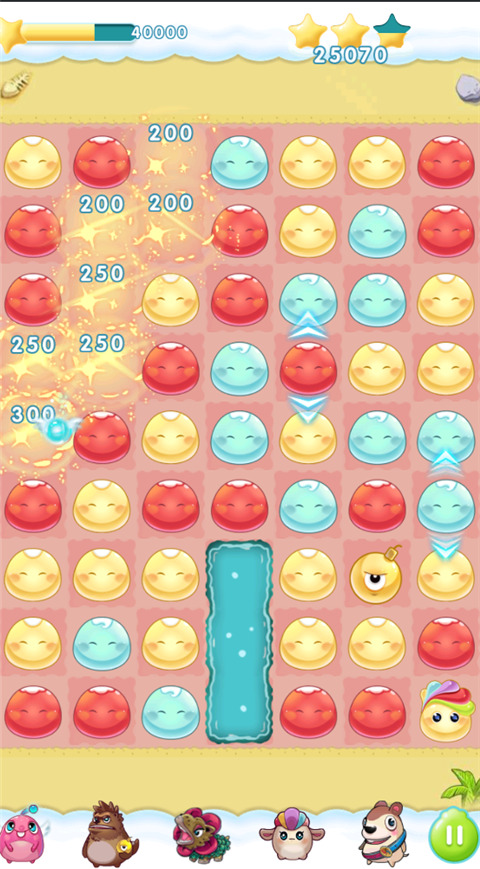 2、而且连接的越多,就能获得更多的道具,比如连接7个玉米就出现的横竖精灵能把你连接的一行或一列全部消除。而连接9个同色玉米会产生炸弹,然后再次消除炸弹就会造成爆炸,获得更多分数。