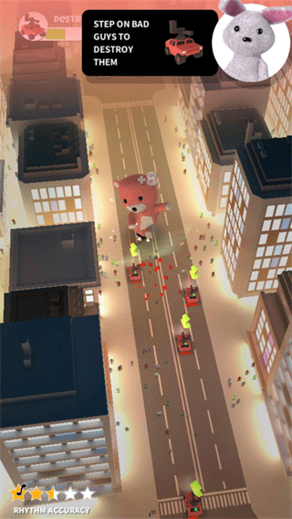 这款游戏不同于传统音乐游戏,拥有多种多样的音乐类型,难度系数最高可达8颗星。玩家需要精准把控节奏感,完成舞蹈挑战并躲避攻击。游戏特色包括奇妙的操作体验、魔性可爱的公仔造型、清新唯美的画风以及众多可解锁的服装搭配。玩法上,玩家可以纵情跳舞,同时需要躲避警方坦克发射的炮弹,并通过踩爆拦路的警车来获得高分奖励。