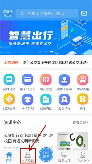 3、也可以选择出行规划,在此输入当前位置与终点,软件会自动为你规划最佳路线,在对应站点等候坐车即可。