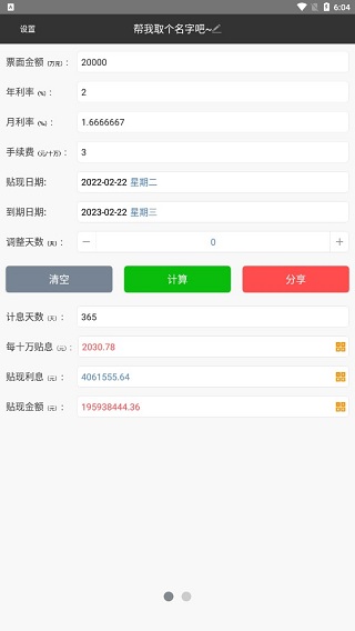 短平快app是一块专业的承兑汇票贴现计算器,软件界面直观,功能丰富,具有贴现利息一键计算功能,帮助持票人在申请贴现时,精准、快速的计算银行承兑汇票的贴现利息。用户可以用来计算电子汇票、纸质汇票以及银行汇票、商业汇票的贴现结果,计算贴现的话则可以自行输入票面金额、年利率、月利率以及手续费、贴现日期等信息,秒级计算之后即可获得贴现结果,可以非常及时的解决用户的计算需求,非常好用。同时这款软件还可以自动化调整天数,遇到节假日的话可以调整电子、纸质汇票的天数,能够体验关联式的计算服务,只要输入贴现日期即可自动计算到期日期,避免因为过期给自己带来的损失,及时进行处理,并且还能根据自己的需要添加相关的计算功能,非常实用方便,有需要的用户不妨下载体验一下试试看吧!