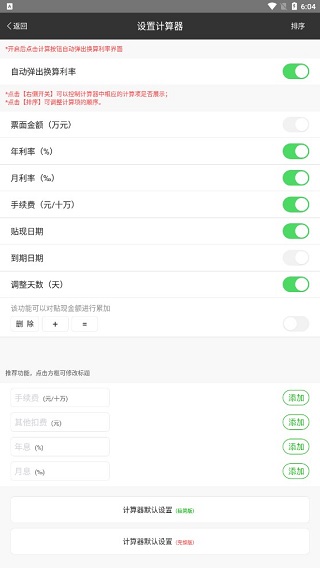 3、自定义添加电汇费、查询费、小款、提成等各种计算功能,打造您专属的计算器;
