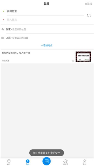 4、点击路线板块,支持我们进行输入出发点和目的地,随后出行相关路线分案;