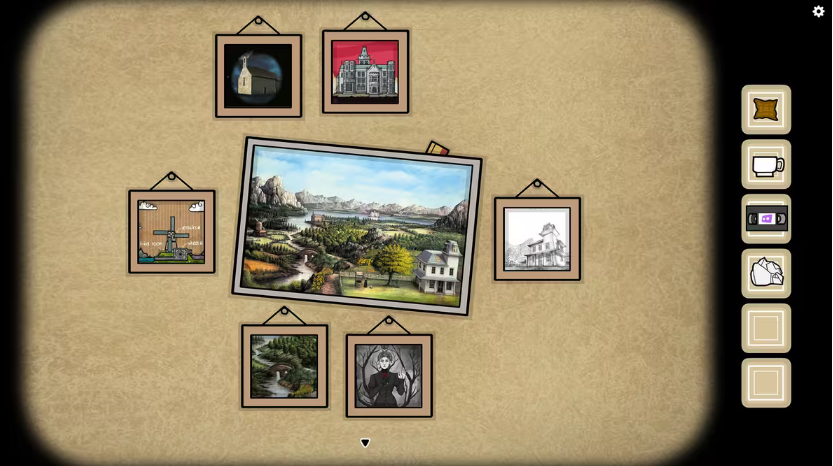 点击墙上的画,按照中间的油画中各种物品的位置将周围的油画放在合适位置,获得火柴。