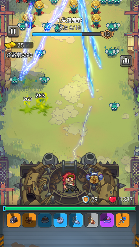 特点:这个搭配涵盖了多种类型的武器,既有范围伤害也有单体输出,适合应对各种战斗场景。雷符和闪电矛提供雷电属性的持续伤害,冲锋枪和激光棒适合清理小怪,火箭筒和卡车则能在关键时刻造成大量伤害。