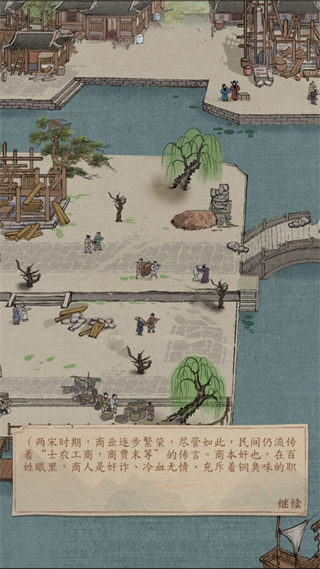以宋代为背景,借精致水墨画风,生动还原古代市井繁华盛景,从依水而兴的古城,到青石板路两旁鳞次栉比的店铺,让玩家仿若置身于那个时代,沉浸式开启传奇商途。