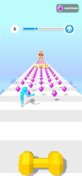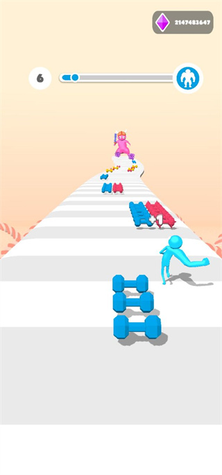 2、然后在跑酷的过程中我们最好多收集蓝色的杠铃,不要去捡红色的;