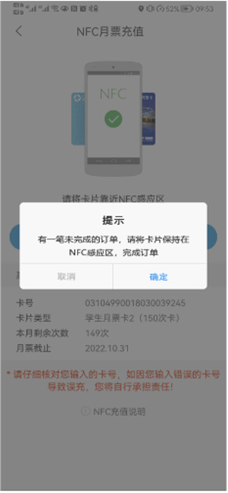 如您已完成付费,但充值过程中移动了卡片,充值金额或者充值的月票并未写到卡上,只需回到读卡页面重新放卡读卡,此时会提示您"有一笔未完成的订单",点击确定,即可完成写卡充值,注意写卡充值过程中不要移动卡片。