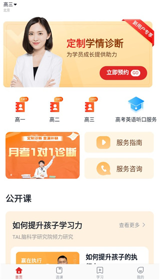 1、在本站下载安装并打开学而思1对1学生端app,进入软件首页,用户可以根据自己需求选择合适自己的课程。